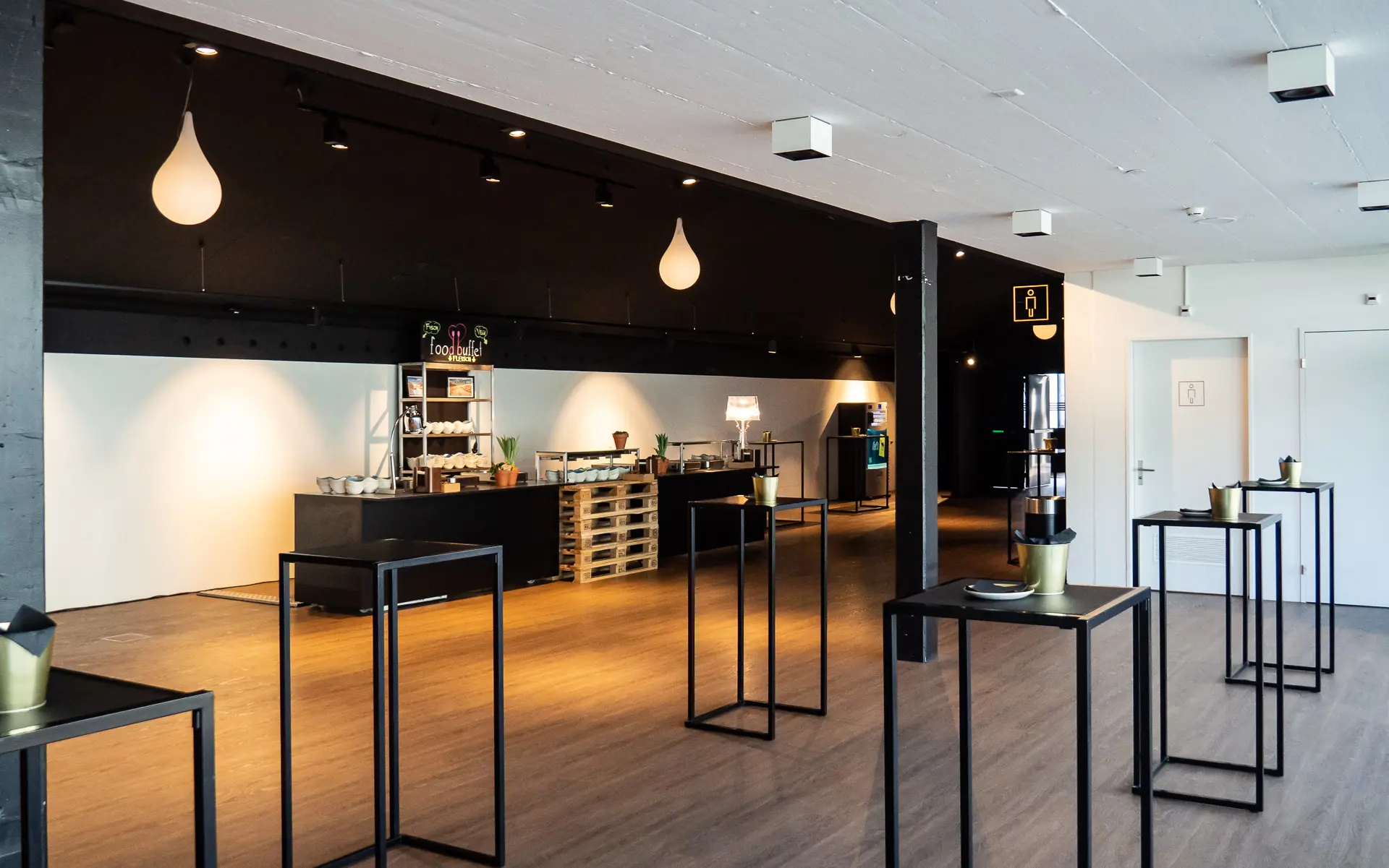 Die offenen Flächen lassen sich flexibel für Ausstellungen, Branding oder individuelle Set-ups nach deinem Wunsch gestalten.