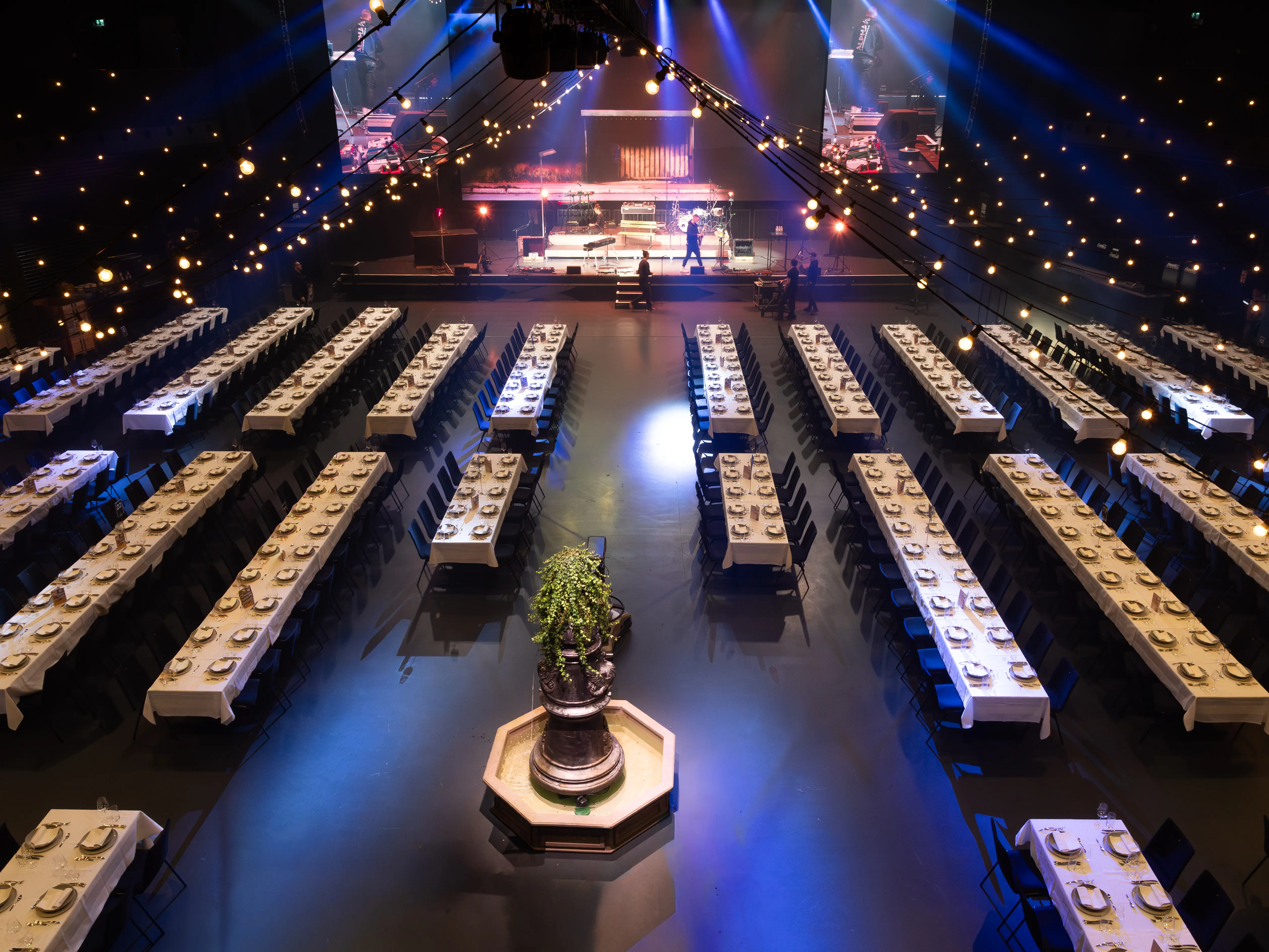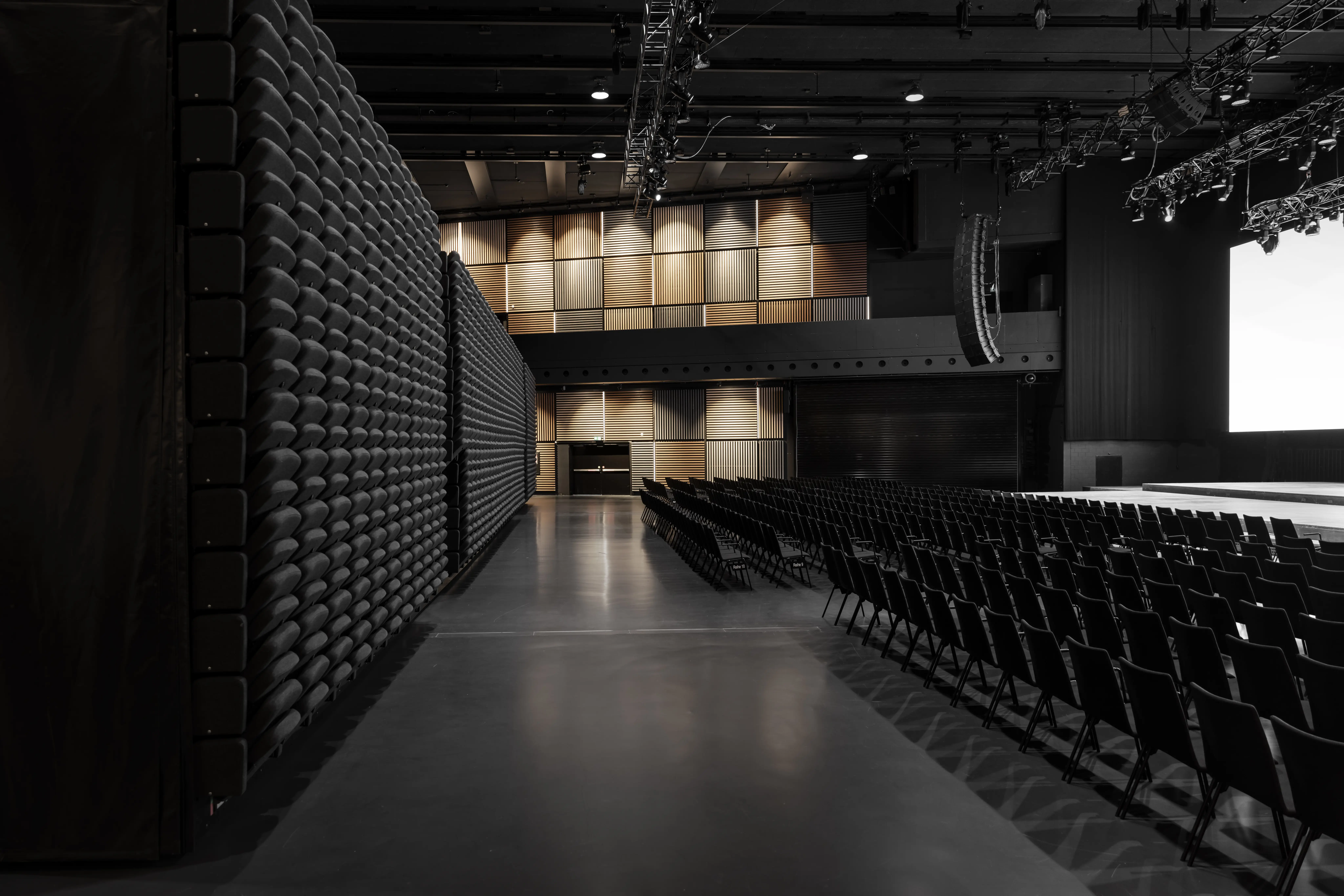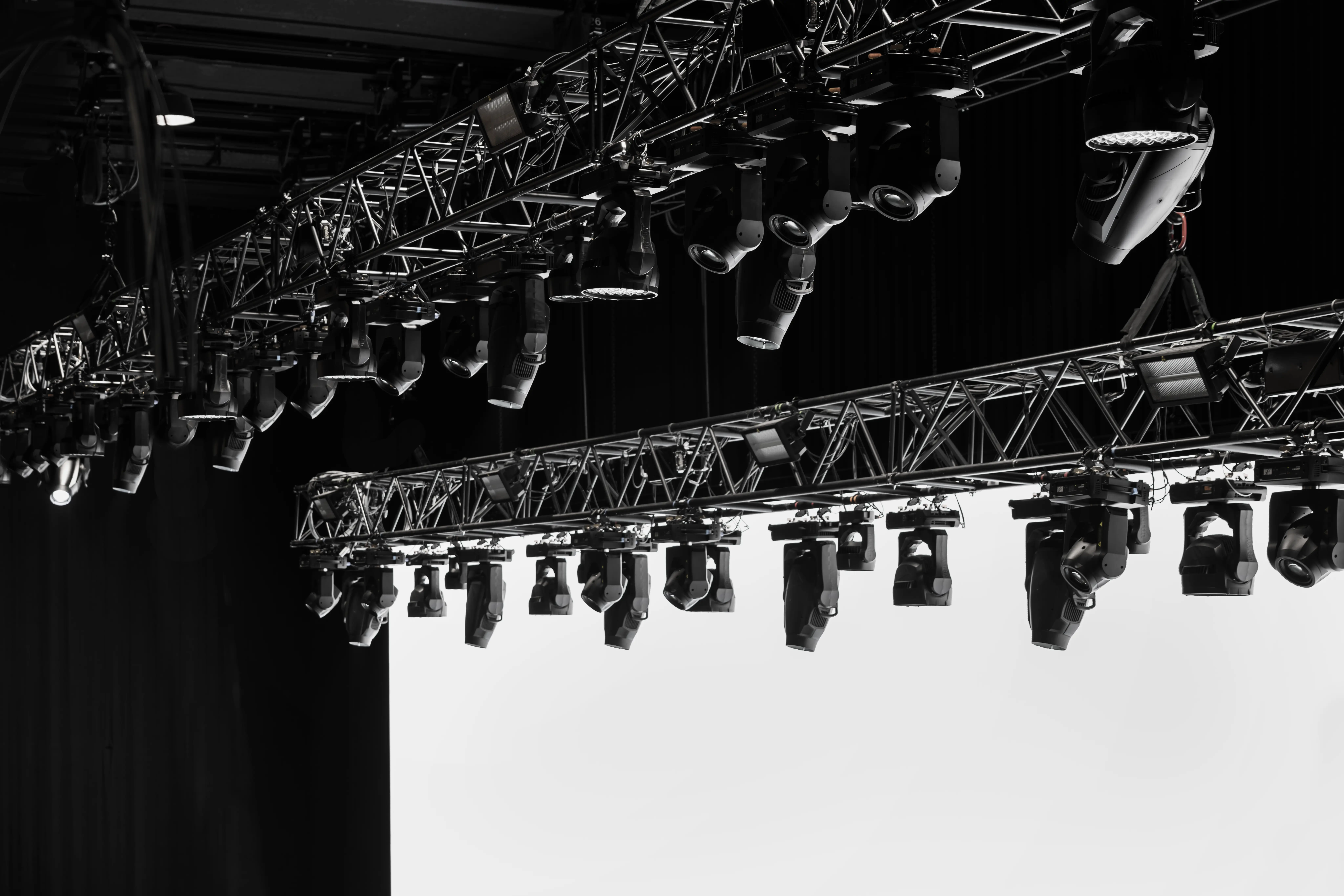 Über 60 Moving Lights auf vier verfahrbaren Trusses ermöglichen dynamische Lichtinszenierungen. RGB-Grundlicht mit Tunable White und integriertes Ambientlicht sorgen für flexible Stimmungen und eine atmosphärische Raumwirkung.