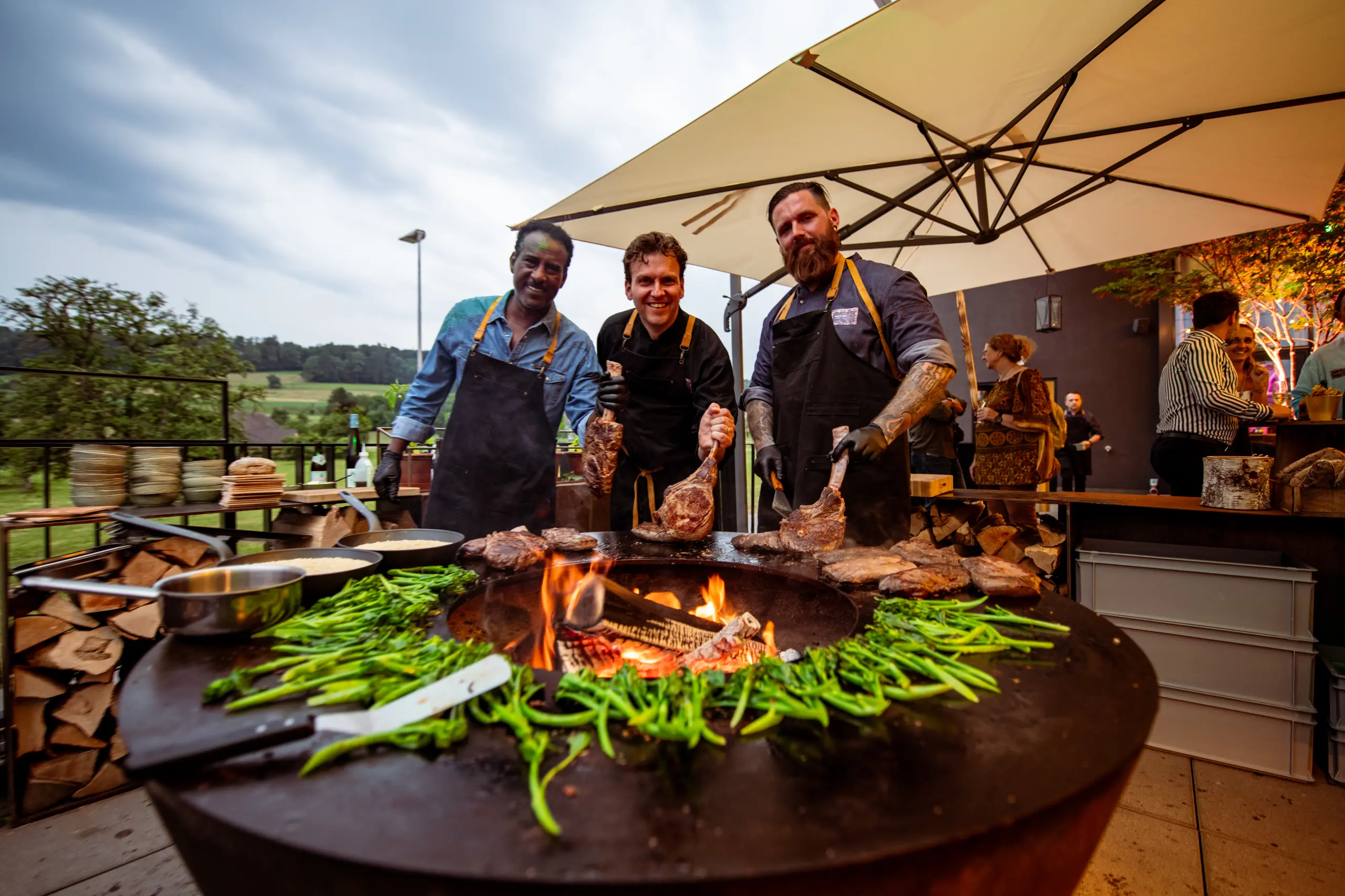 Die LOFT Terrasse bietet dir maximale Freiheit für individuelle Eventkonzepte. Der Original Feuerring® bildet das kulinarische und emotionale Zentrum, ergänzt durch Zierbäume mit integrierten Sitzbänken.