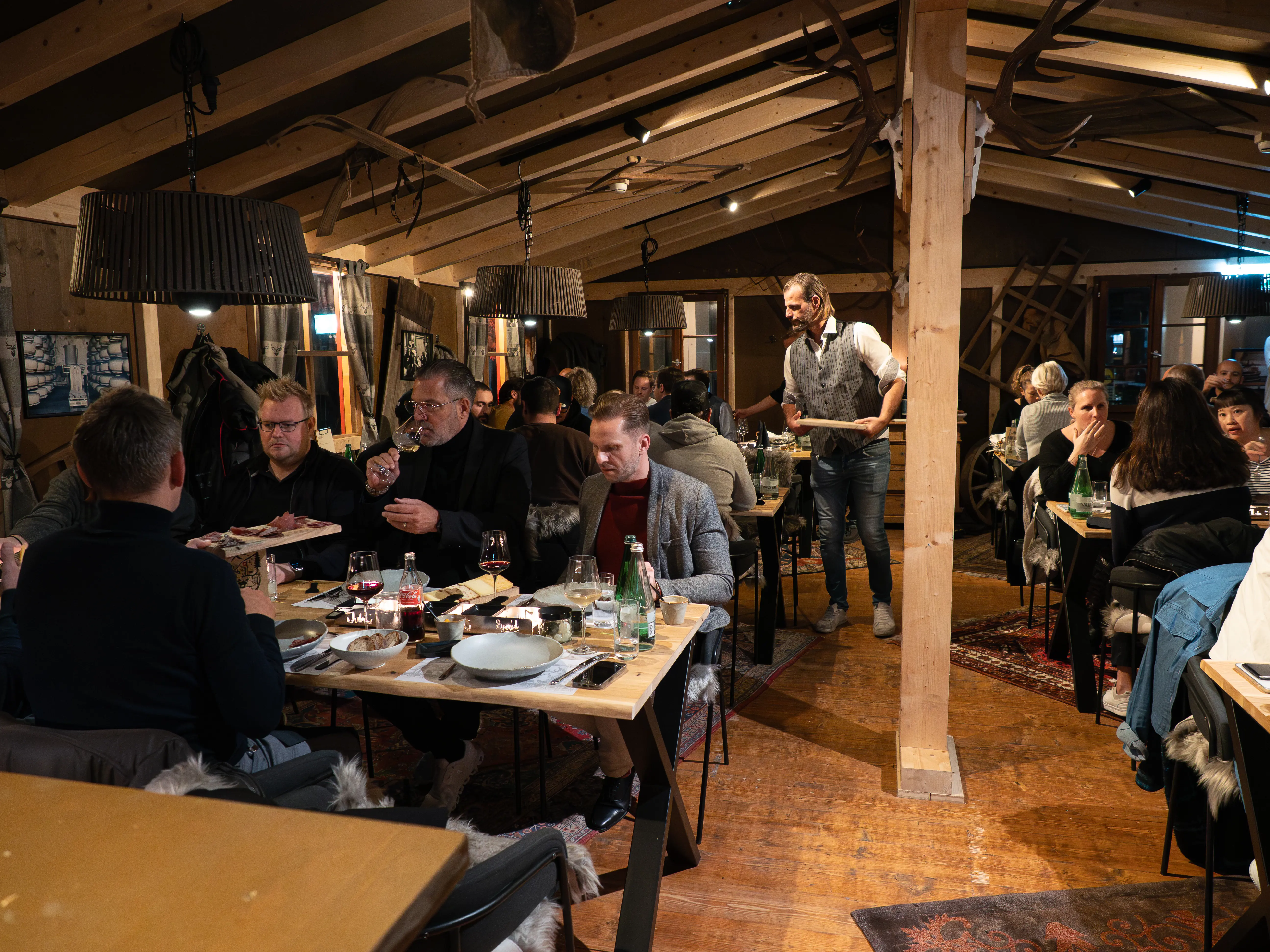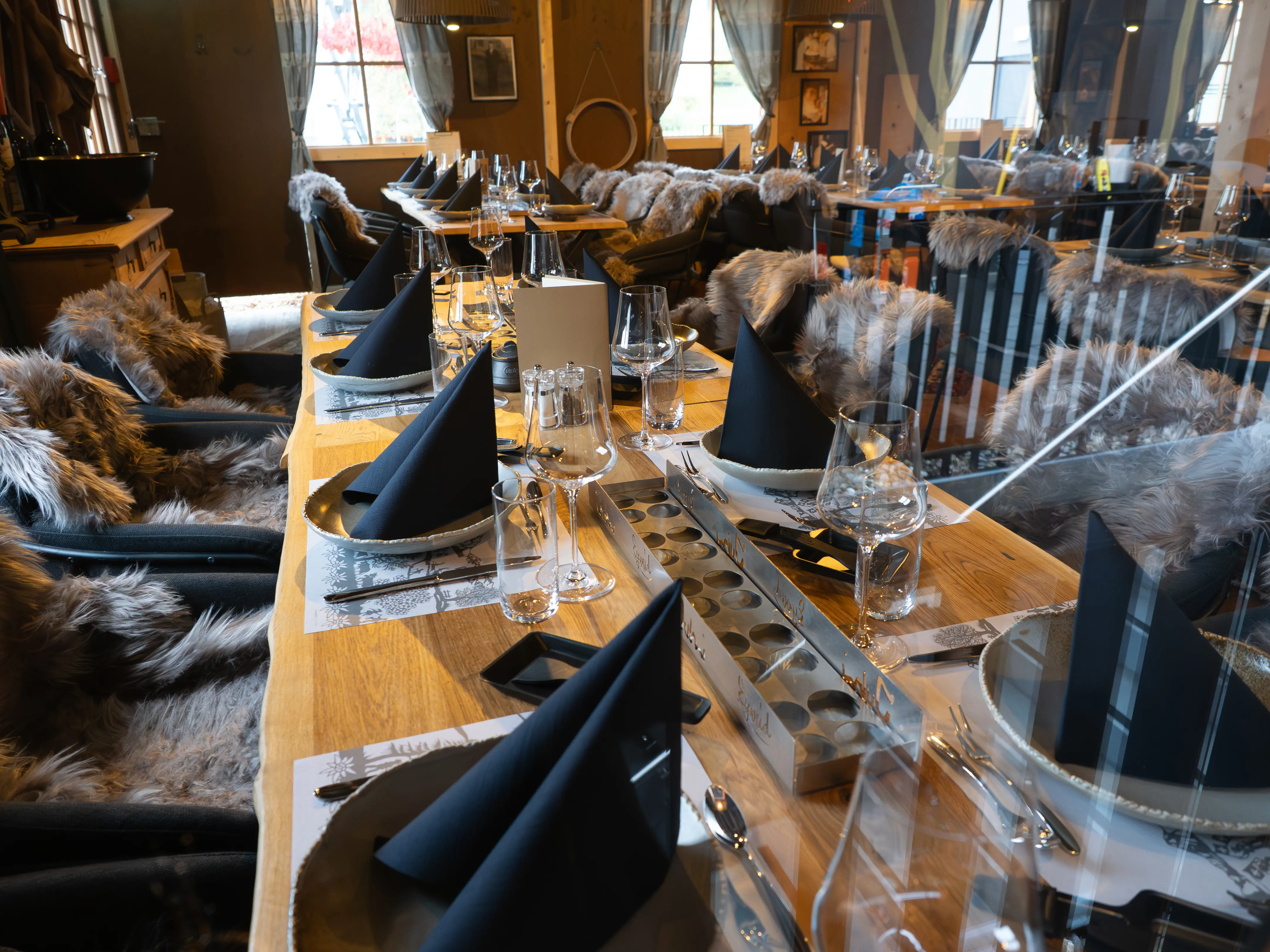 Das Jumi Chalet ist für Anlässe gedacht, bei denen Austausch und gemeinsames Erleben im Mittelpunkt stehen. Der Raum ist bewusst überschaubar gehalten und bringt alle an einen Tisch. Holz, Wärme und der offene Raclette-Ofen schaffen eine ungezwungene Atmosphäre, die Gespräche fördert und Hierarchien auflöst. Ideal für Teamevents, Kundenabende oder Workshops mit kulinarischem Fokus.
