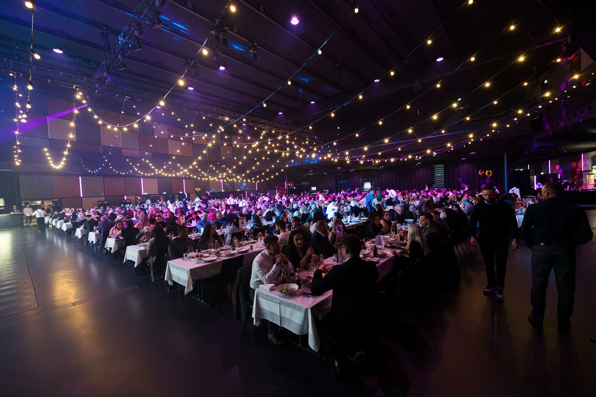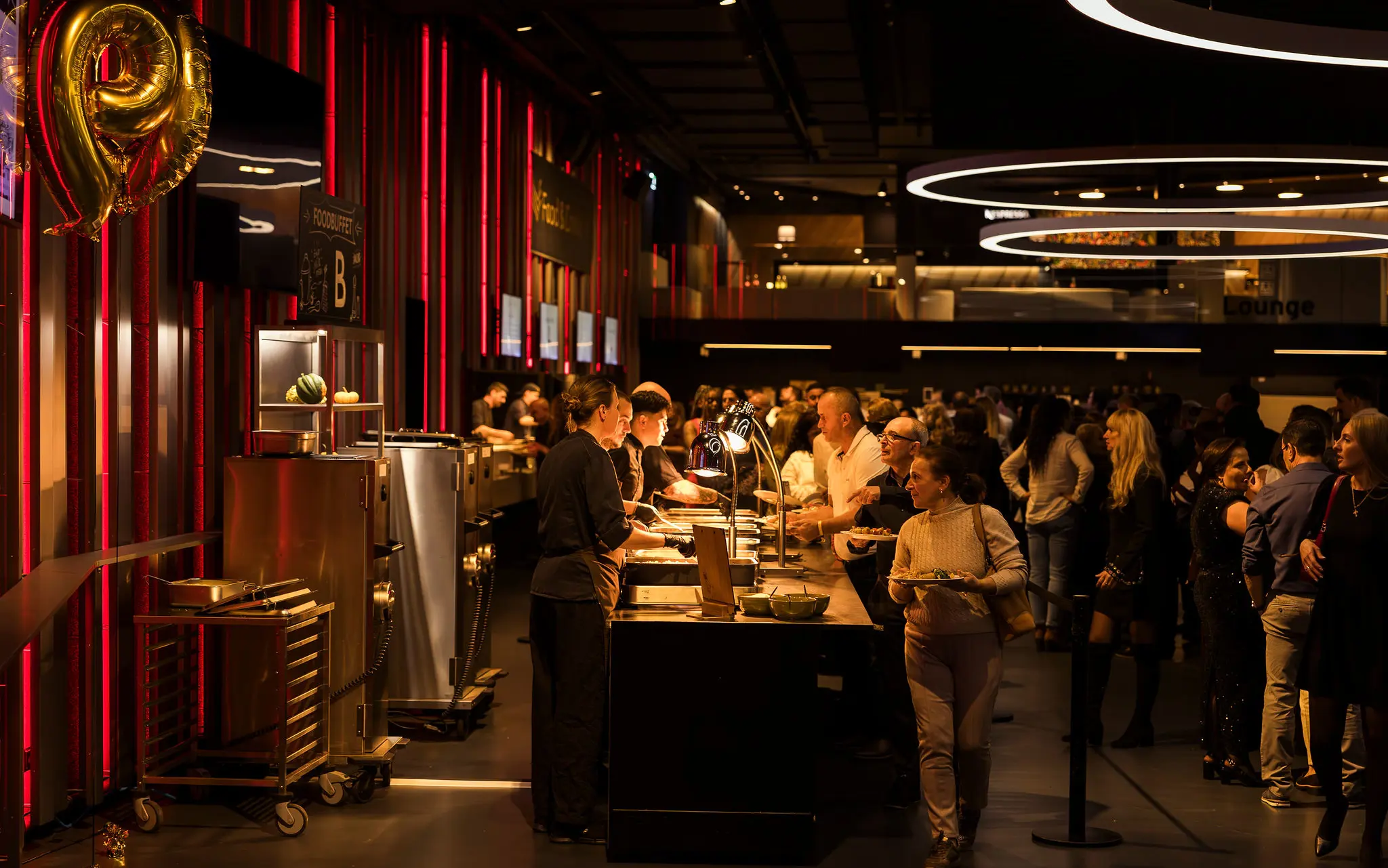 Im Mittelpunkt des Abends standen ein vielseitiges kulinarisches Angebot, grosszügige Dinner-Settings sowie eine ausgelassene Feier in stimmungsvollem Ambiente. Die flexiblen Raumkonzepte von THE HALL ermöglichten eine klare Strukturierung des Anlasses und boten zugleich Raum für Begegnung, Austausch und gemeinsames Feiern.